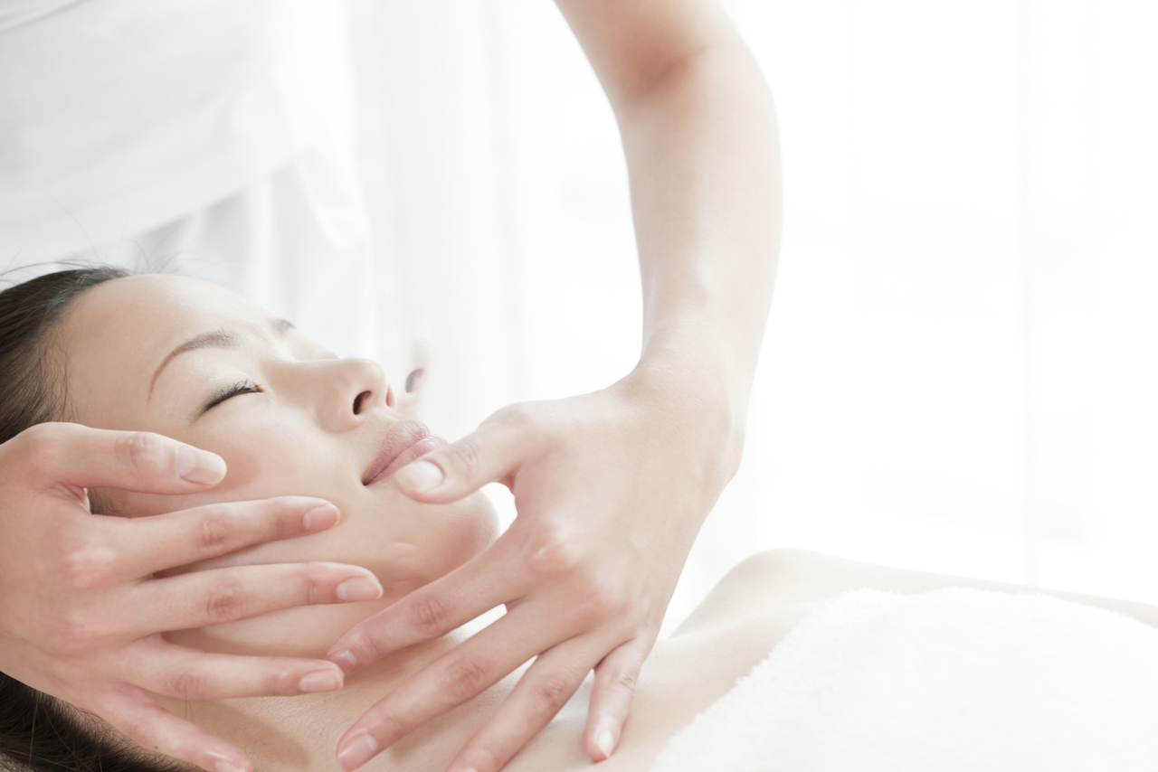 小顔コースでは、主に頭部、首、お顔まわりの施術をクリームなどを使い、オールハンドで行います。